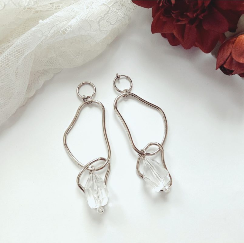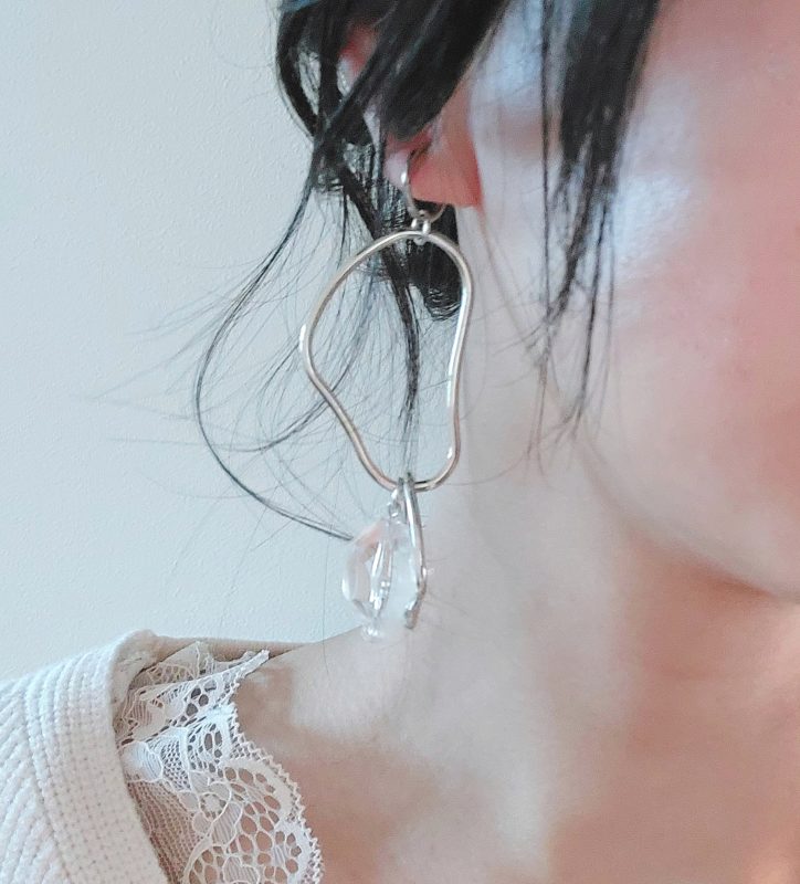 36. ロッククリスタル・イヤリング(ピアス) ¥ 2980 大胆にカットされたロッククリスタルビーズと アシンメトリーフープのイヤリング* ▼ピアス変更(無料) サージカルステンレス素材のフープピアスへ変更可能です。 ご希望の際は、備考欄にご記入ください。 ピアスヘッド変更 無料 サイズ 長さ→9cm 最大値幅→2.7㎝ 素材 ・フープイヤリング・・・サージカルステンレス ・ビーズ ・その他パーツ・・・真鍮上にロジウムメッキ加工を施したもの ロジウム素材には変色・黒ずみ防止コーディングをしております。 JIS基準の有害性ゼロの安心コーティング剤です。 ご注文はコチラ Creema minne