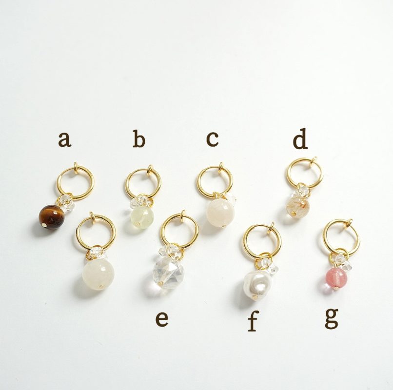 2.【組み合わせ自由!】ミニフープイヤリング/ゴールド ¥ 3980 組み合わせ無限! 自由に選べる7種類 (それぞれサイズが違いますので、ご注意ください) ▼ストーンの種類 a, ダイガーアイ 6mm b, プレナイト 6mm c, ムーンストーン 10mm d, ルチルクォーツ 6mm e, オーロラクォーツ 10mm f, パール ビーズ 10mm g, チェリークォーツ 6mm ピアスヘッド変更 無料 サイズ フープピアス/イヤリング・・・1.3㎝ 素材 ・天然石/パールビーズ ・イヤリング→ サージカルステンレス(ニッケルフリーメッキ処理) ・その他パーツ・・・・丹銅/肌馴染みの良い柔らかいゴールド ロジウム素材には変色・黒ずみ防止コーディングをしております。 JIS基準の有害性ゼロの安心コーティング剤です。 ご注文はコチラ Creema minne