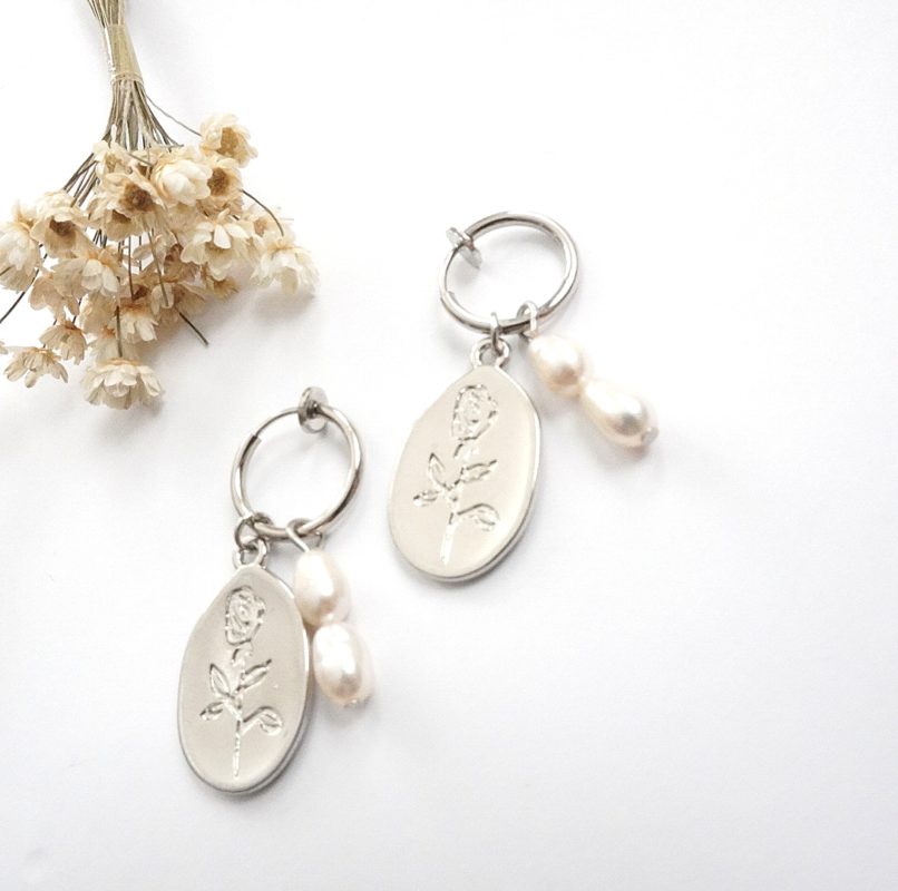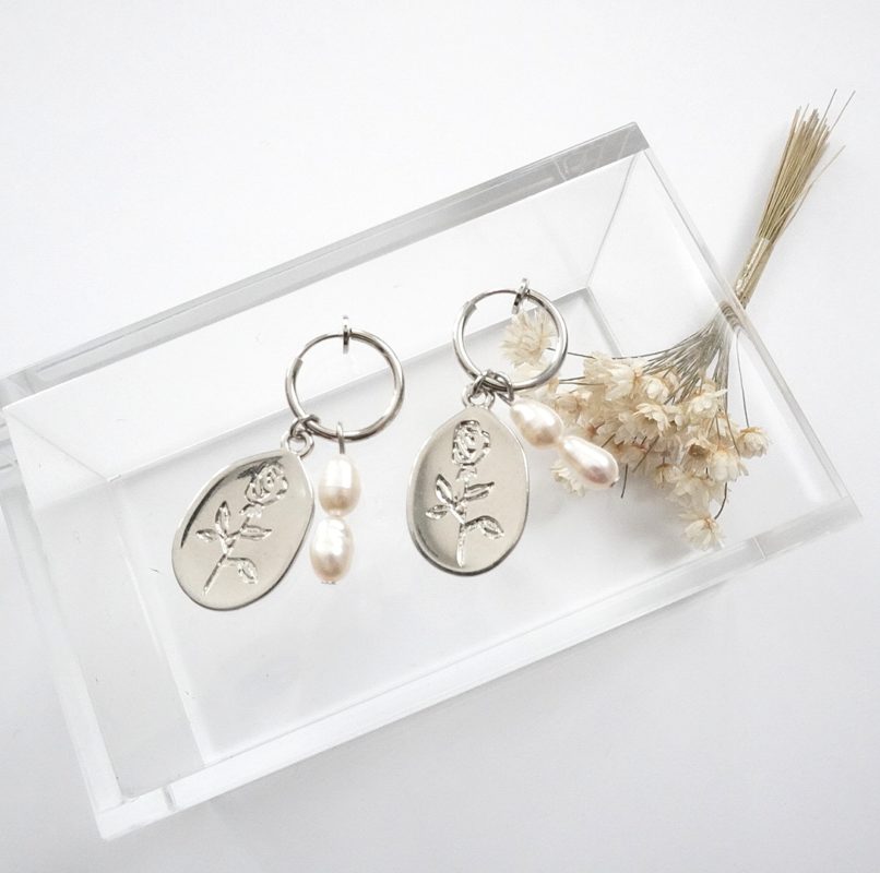 40. フラワープレートと淡水パールのイヤリング/ピアス
