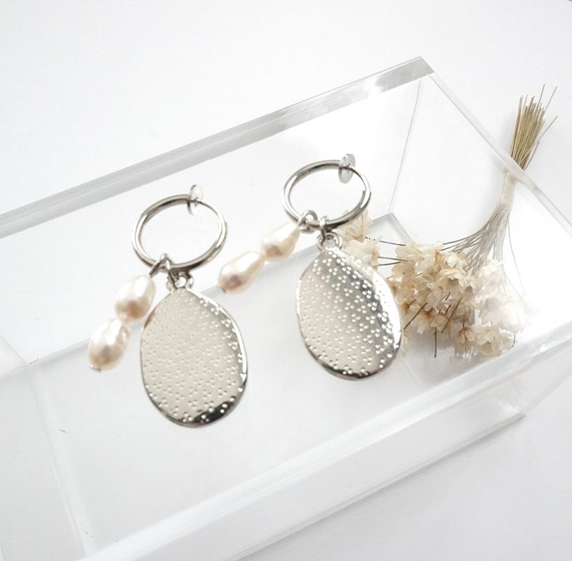 淡水パールの上品な組み合わせのフープイヤリングです*