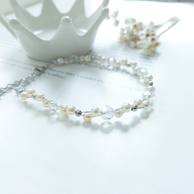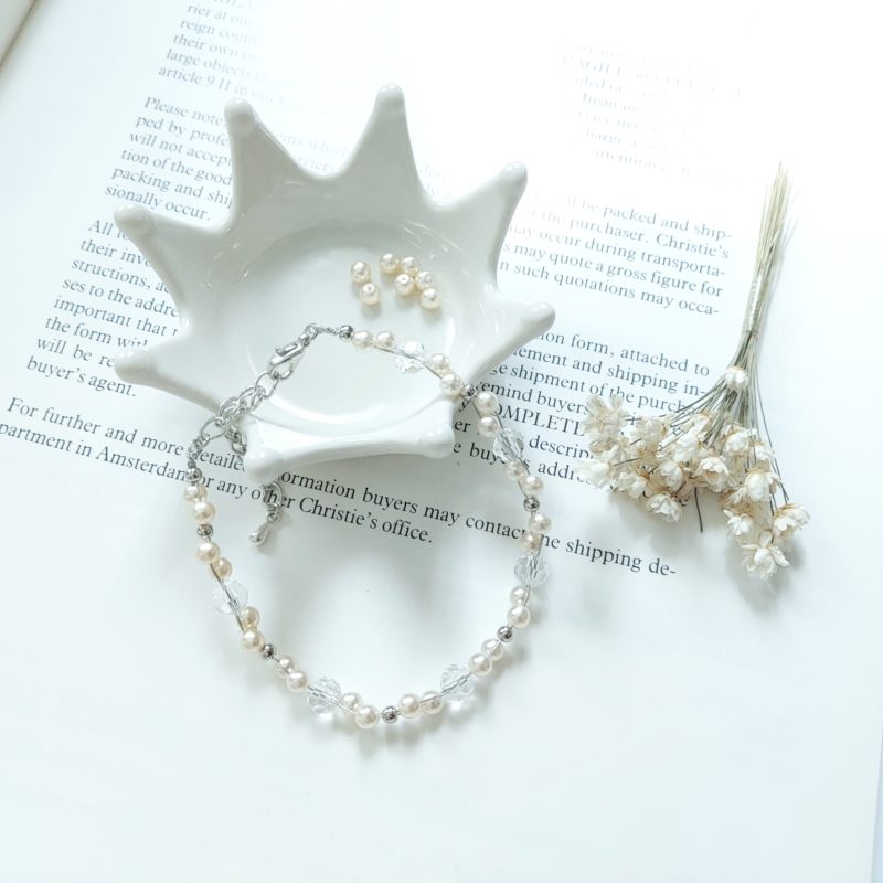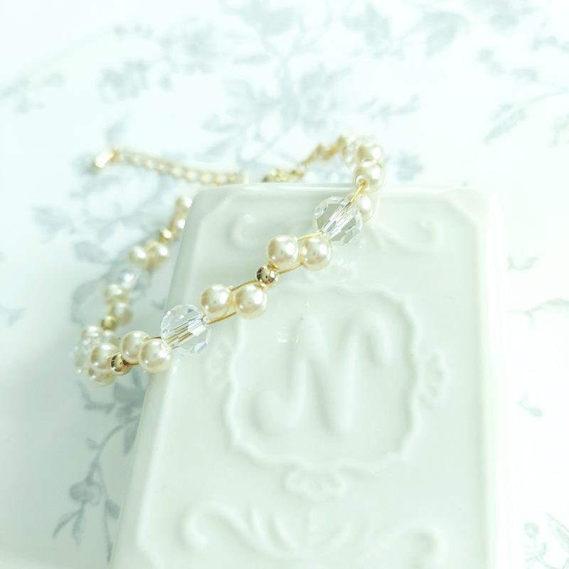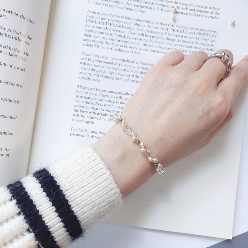 パールとクリスタルビーズのブレスレット*