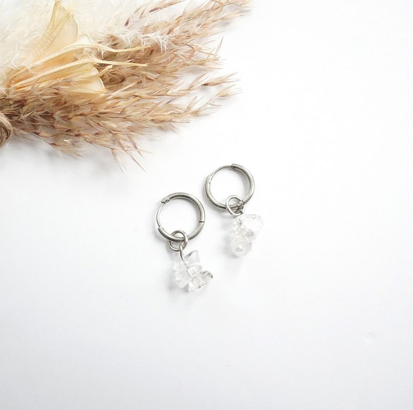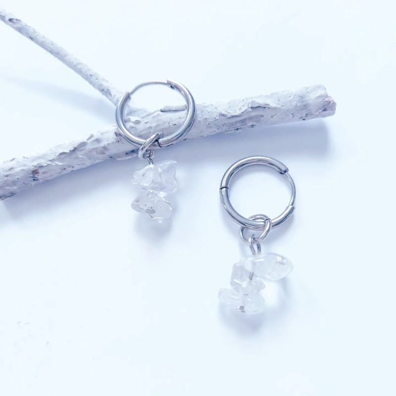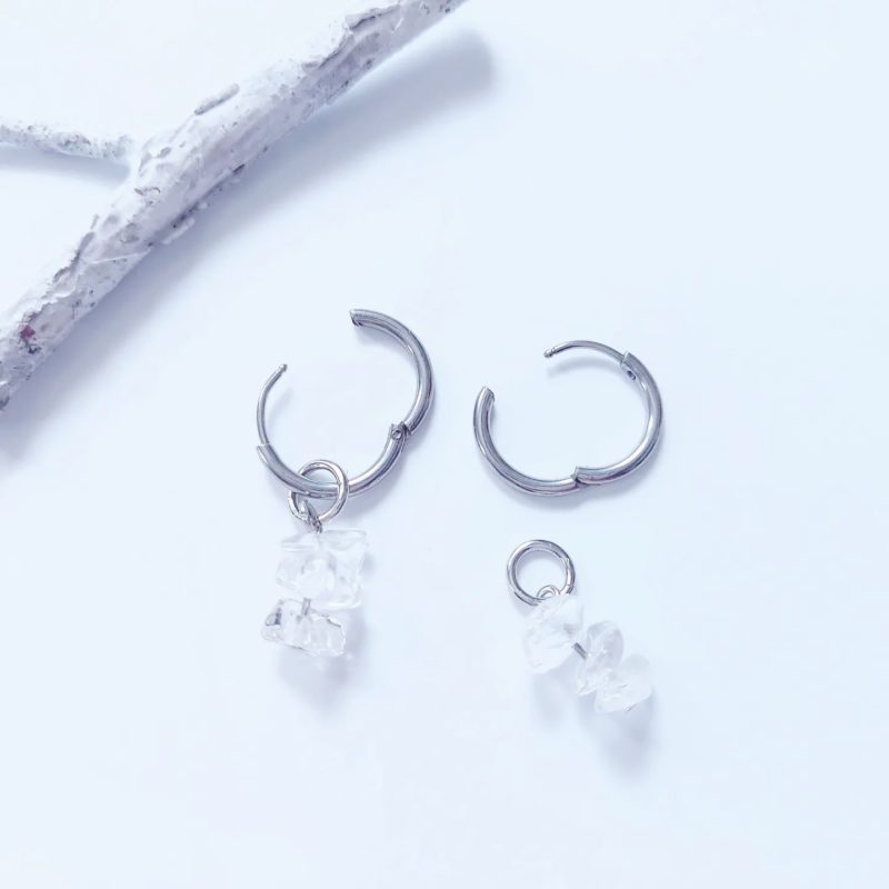 24.【サージカルステンレス】2way水晶ミニフープピアス/イヤリング ¥ 2480 ランダムカットの小さな水晶のミニフープピアス* 取り外し可能なため、フープピアスのみで使うことも出来る2wayピアスです、 全てサージカルステンレス素材のため つけっぱなしOK・お手入れ簡単! ▼ピアス・イヤリング変更 ※ご希望の際は、備考欄にご記入下さい※ (デフォルトはフープピアス※アレルギー対応) ・フープピアス ・フープイヤリング ・スタッドピアス ・ネジバネ式イヤリング サイズ ・フープピアス1.3㎝ ・全長→2.5㎝ 素材 ・サージカルステンレス304 ご注文はコチラ Creema minne