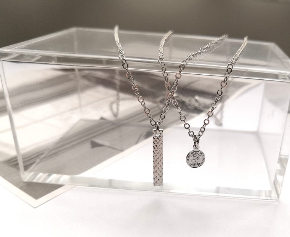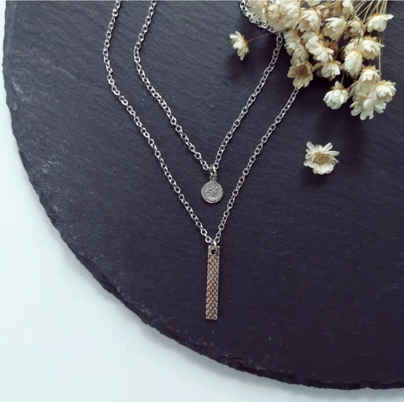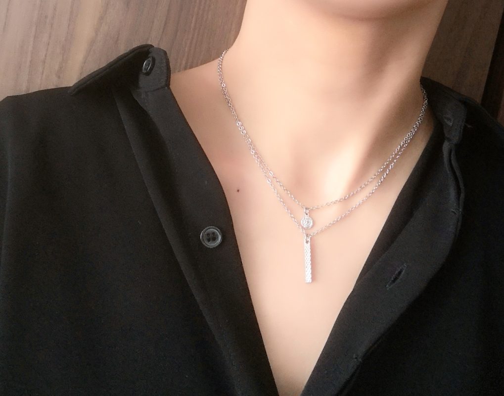 - O. 【ステンレスチェーン使用】プレートとぷちコインの2連ネックレス