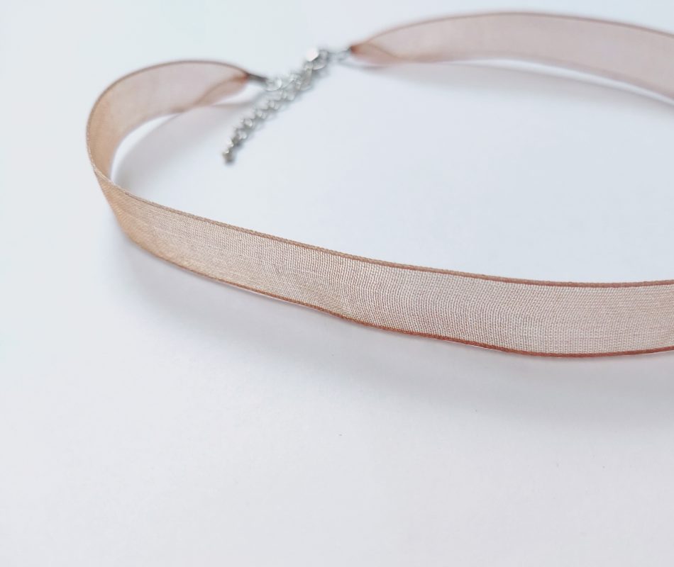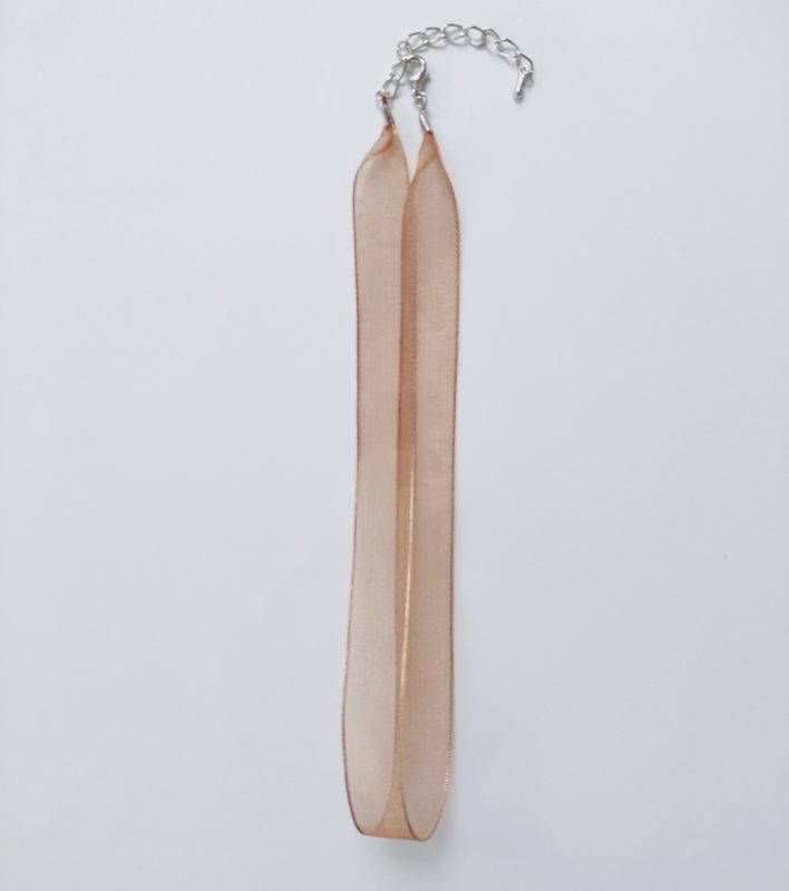 淡いブラウンカラーと柔らかなオーガンジーリボンで優しい雰囲気のチョーカー。