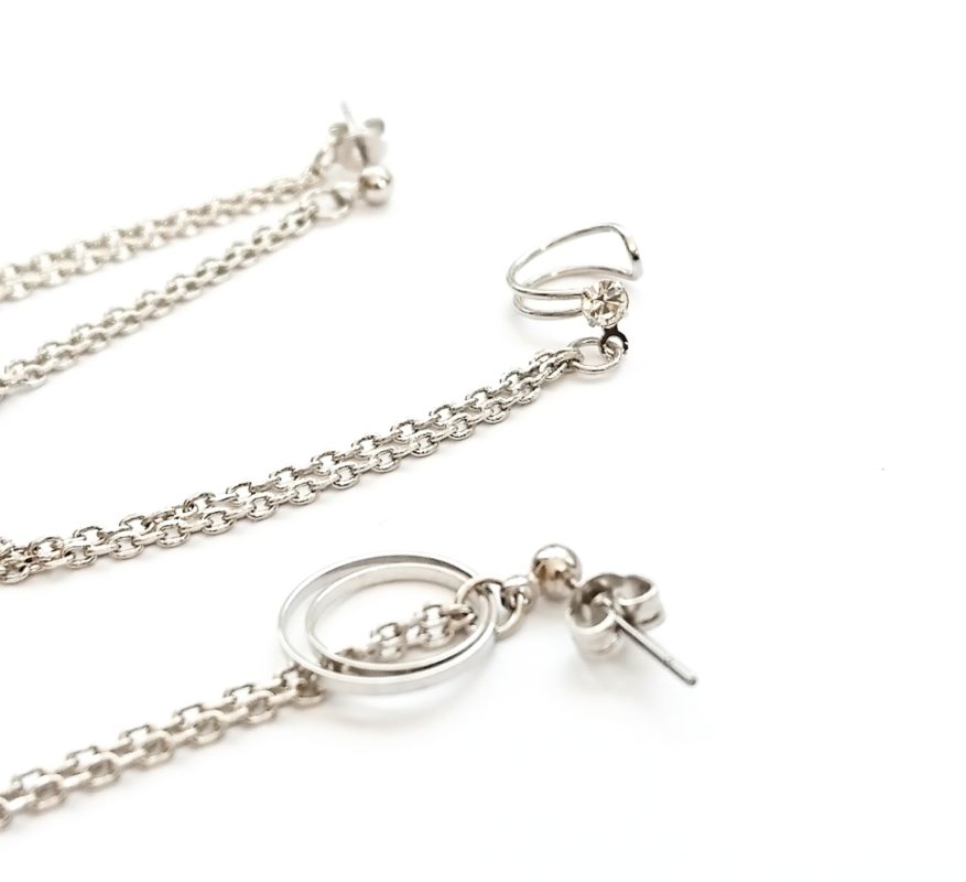 ・カフ付きチェーンピアス