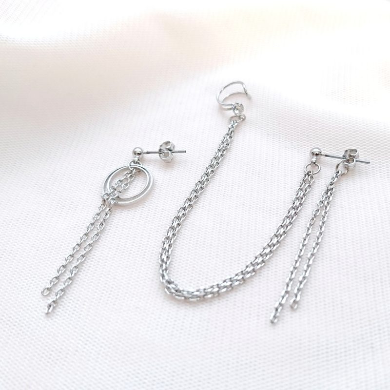 19.【サージカルステンレスピアス】イヤーカフ×ピアス・アシメチェーンピアス