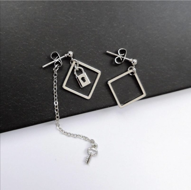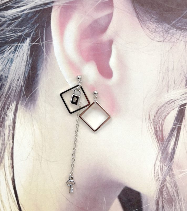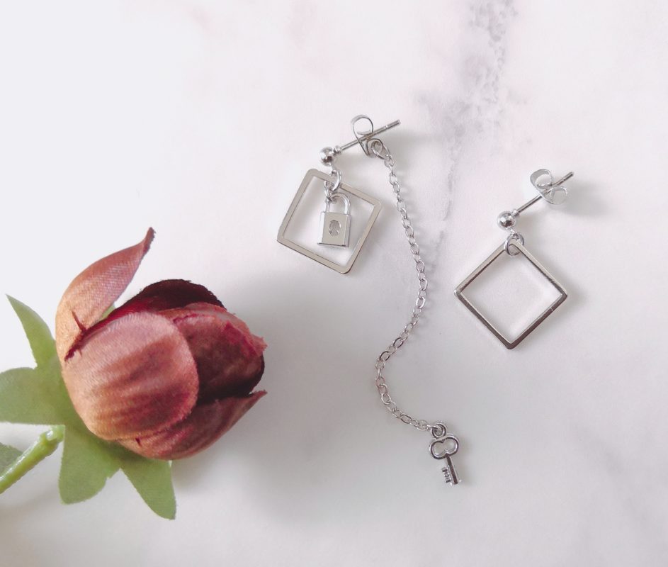 42.小さな鍵と南京錠のアシメピアス・イヤリング