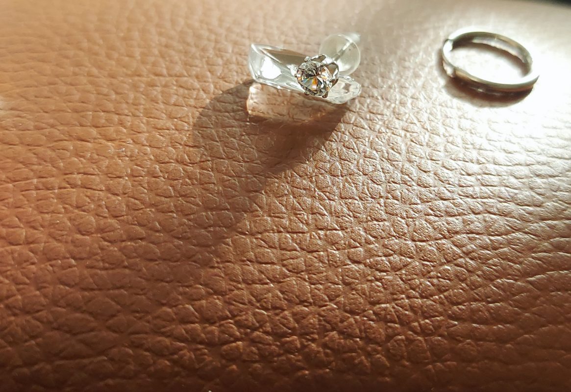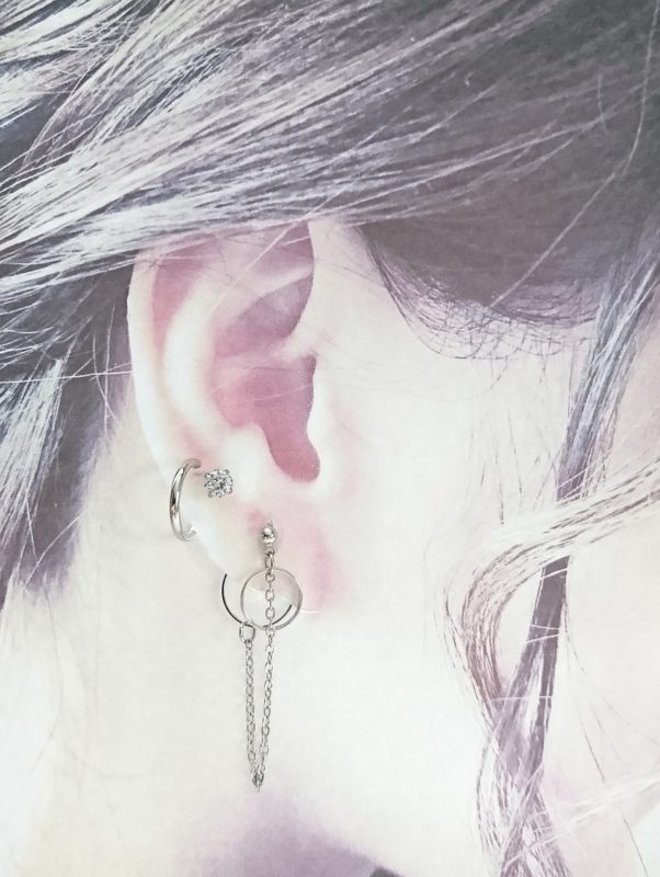 ・リングチェーンピアス→チェーン全長・6㎝、リング表側直径1㎝・裏側1.2㎝