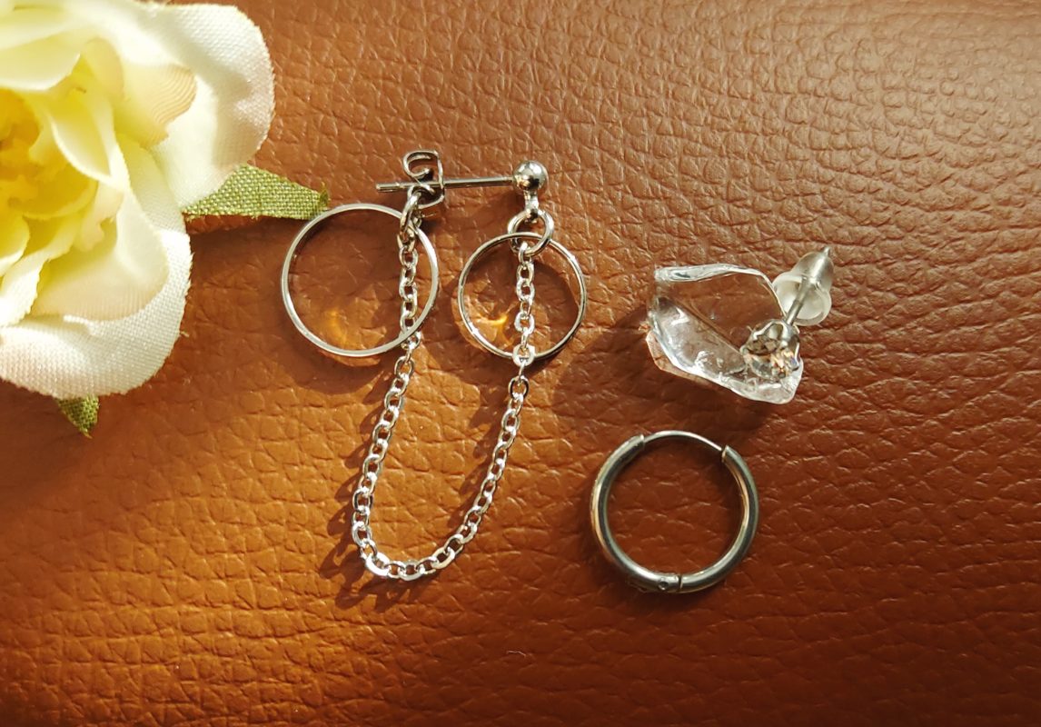 3つまとめて身に着けたり、お手持ちのアクセサリーと組み合わせたりと自由自在なピアスです
