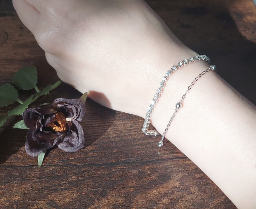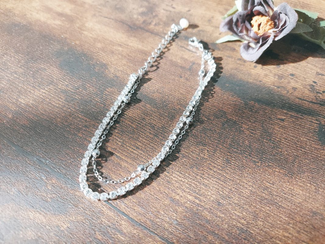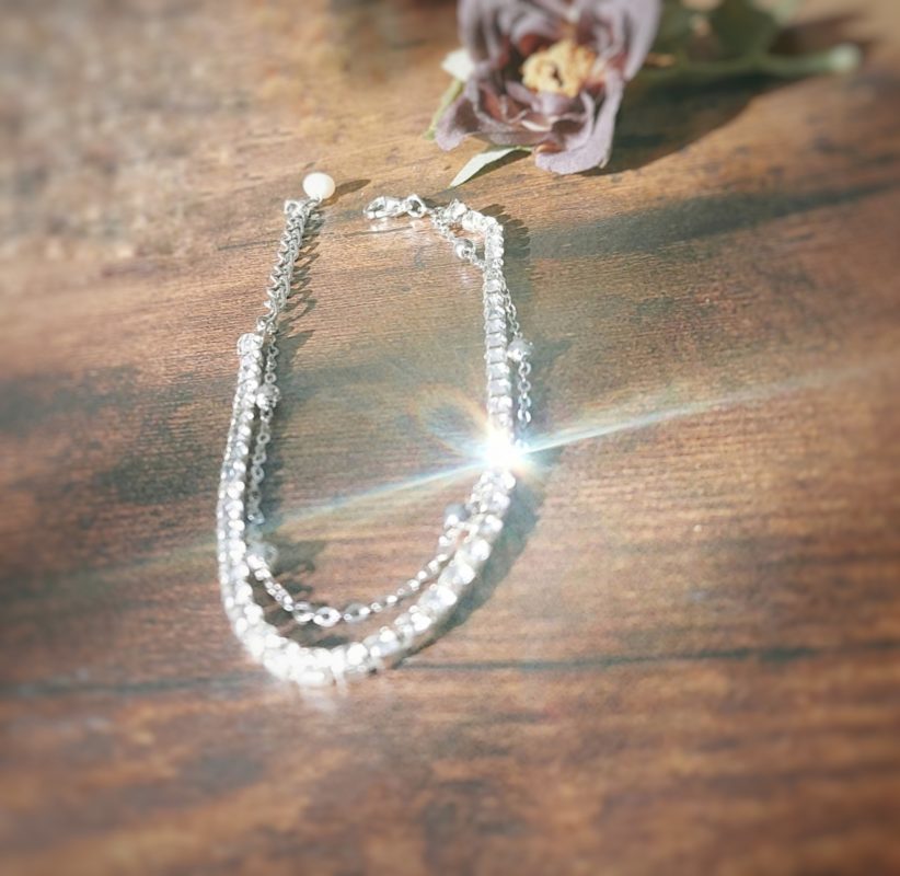 シルバーのラインストーンを使った2連ブレスレットです*