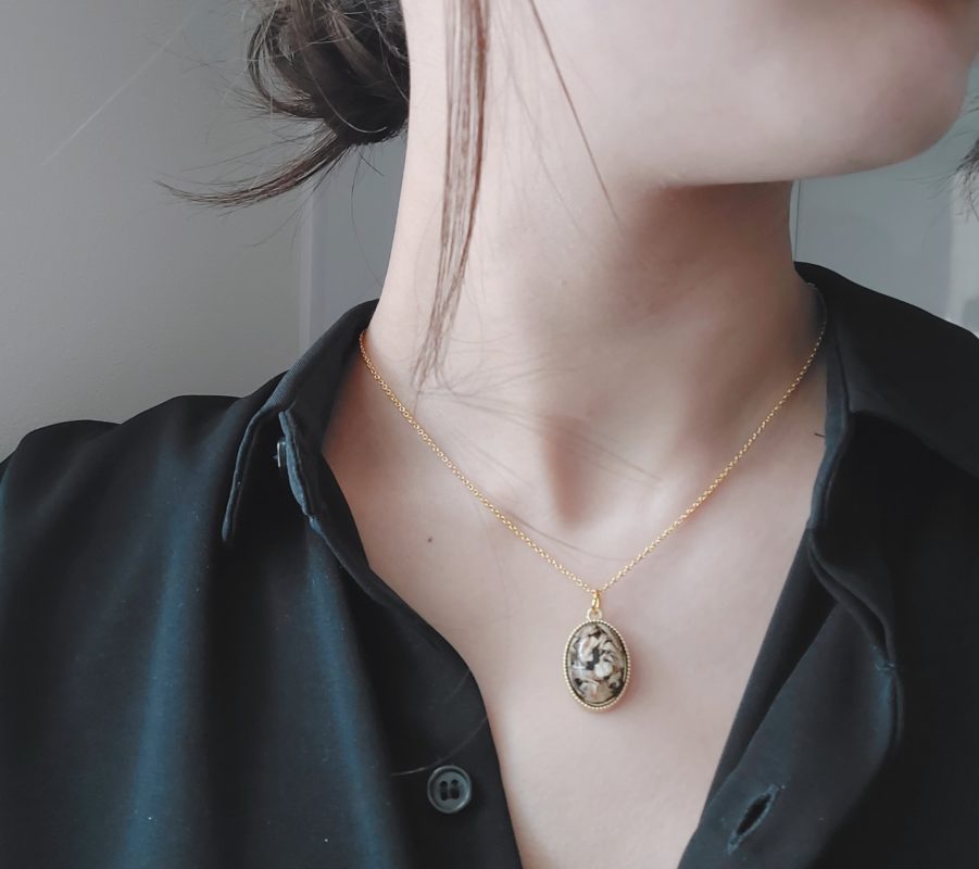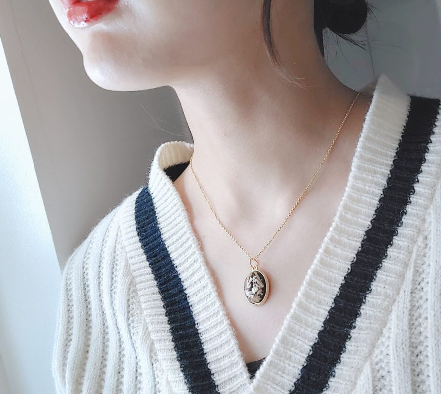 - I.ドライフラワーペンダントネックレス(ブラック/Silver925・18kgp)
