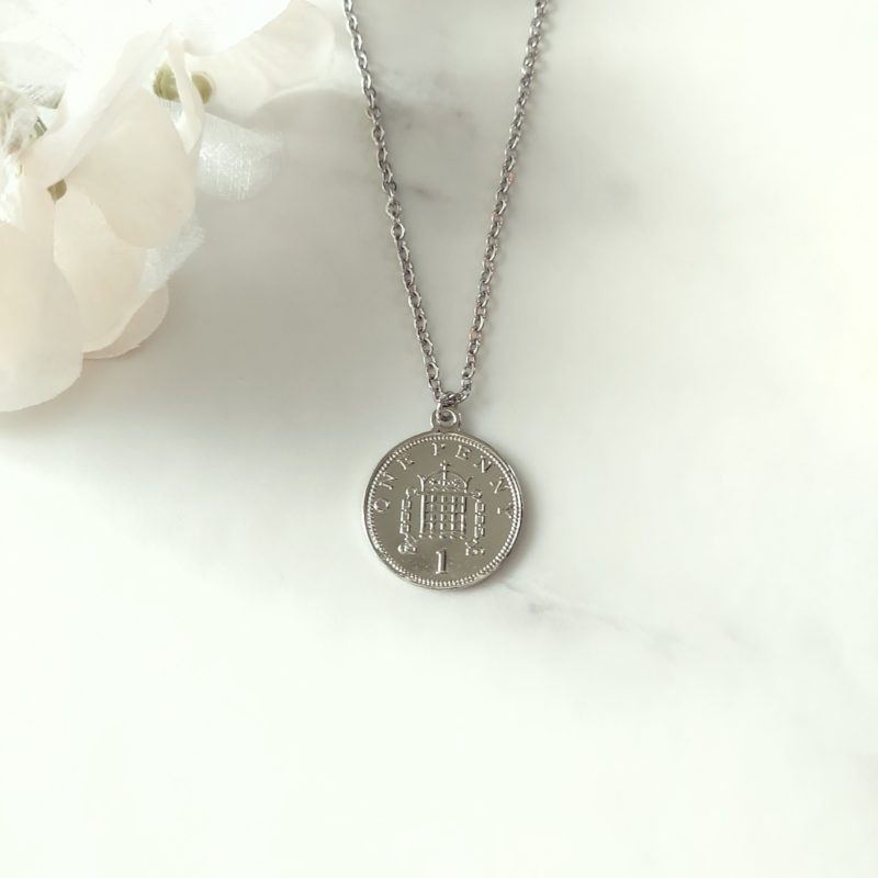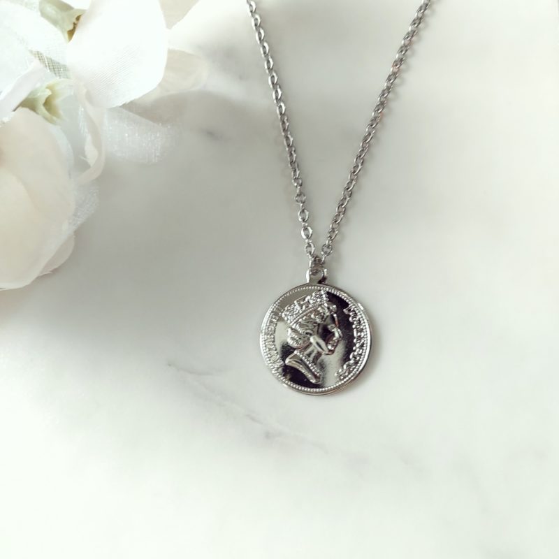 ・コインモチーフ・・・真鍮上にロジウムメッキ加工を施したもの