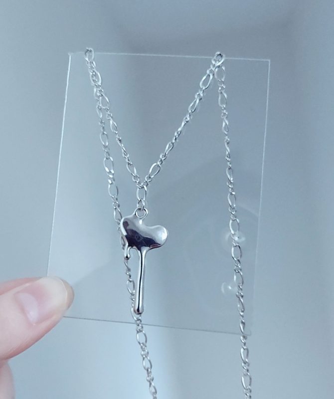 チェーンも飾りチェーンを使用し、シンプルながら個性が見えるネックレスです。