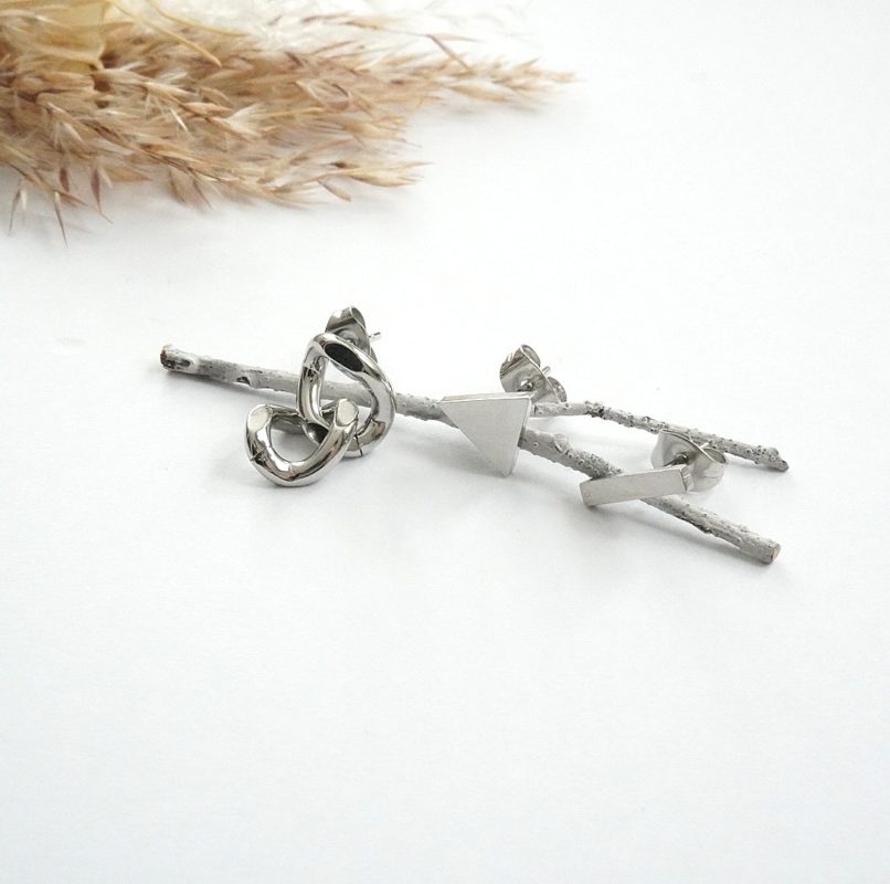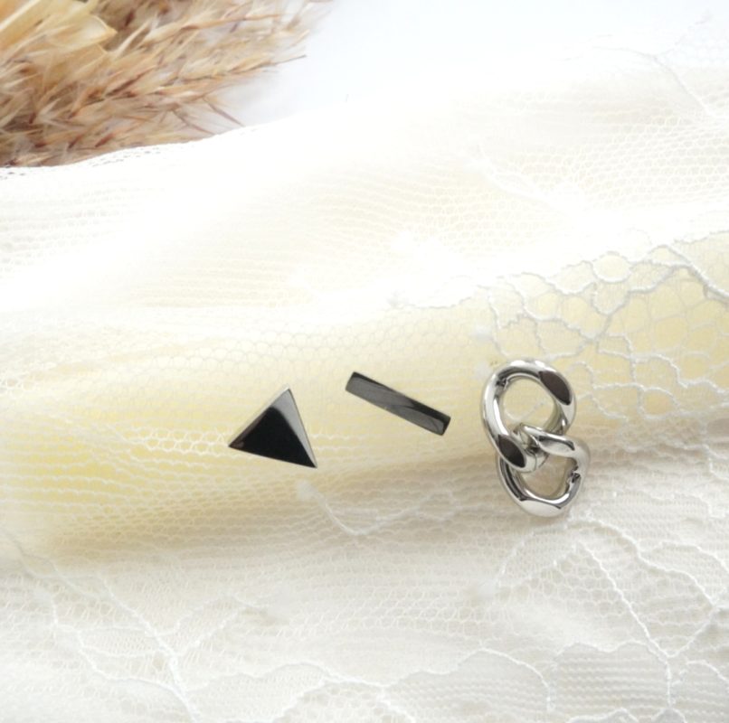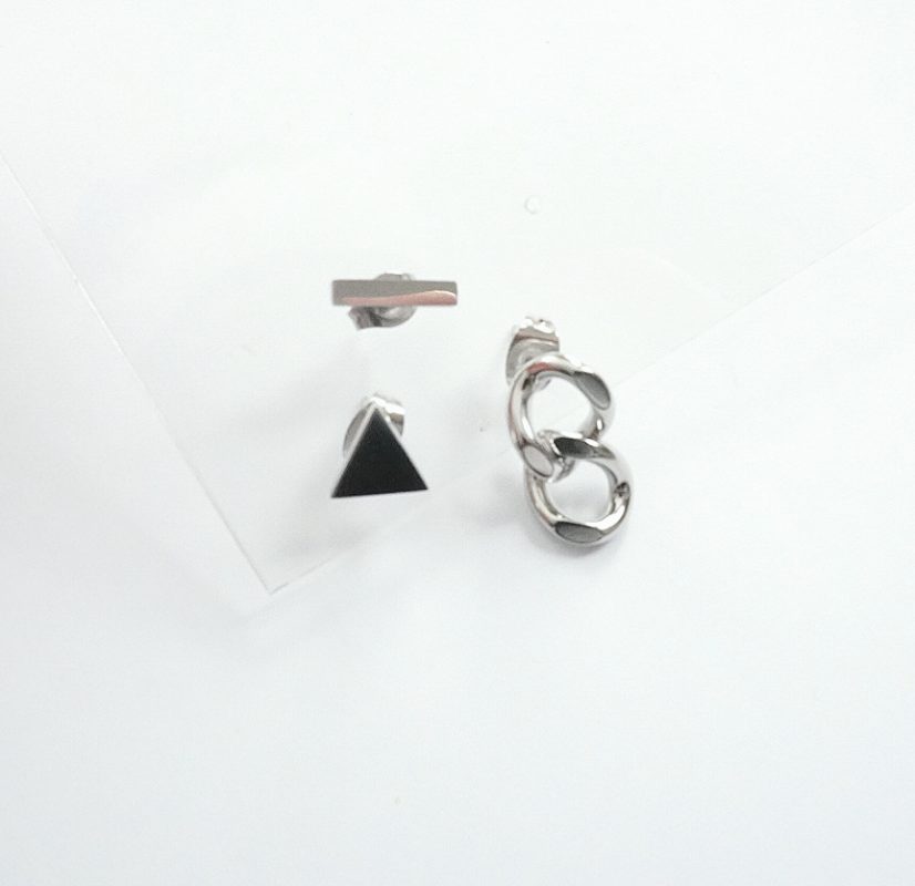 【サージカルステンレス】11. さんかく・T・チェーン・ピアス3点セット ¥ 1980 さんかく、T、チェーンの3点セット アシンメトリーピアスです* 全てサージカルステンレス素材のため つけっぱなしOK・お手入れ簡単! ※各モチーフ1点ずつ封入※ ピアスヘッド変更 無料 サイズ ・さんかく→一辺0.7㎝ ・T→1㎝ ・チェーン→長さ1.2㎝ 素材 本体、ポスト・・・サージカルステンレス304 キャッチ・・・サージカルステンレス316 ご注文はコチラ Creema minne