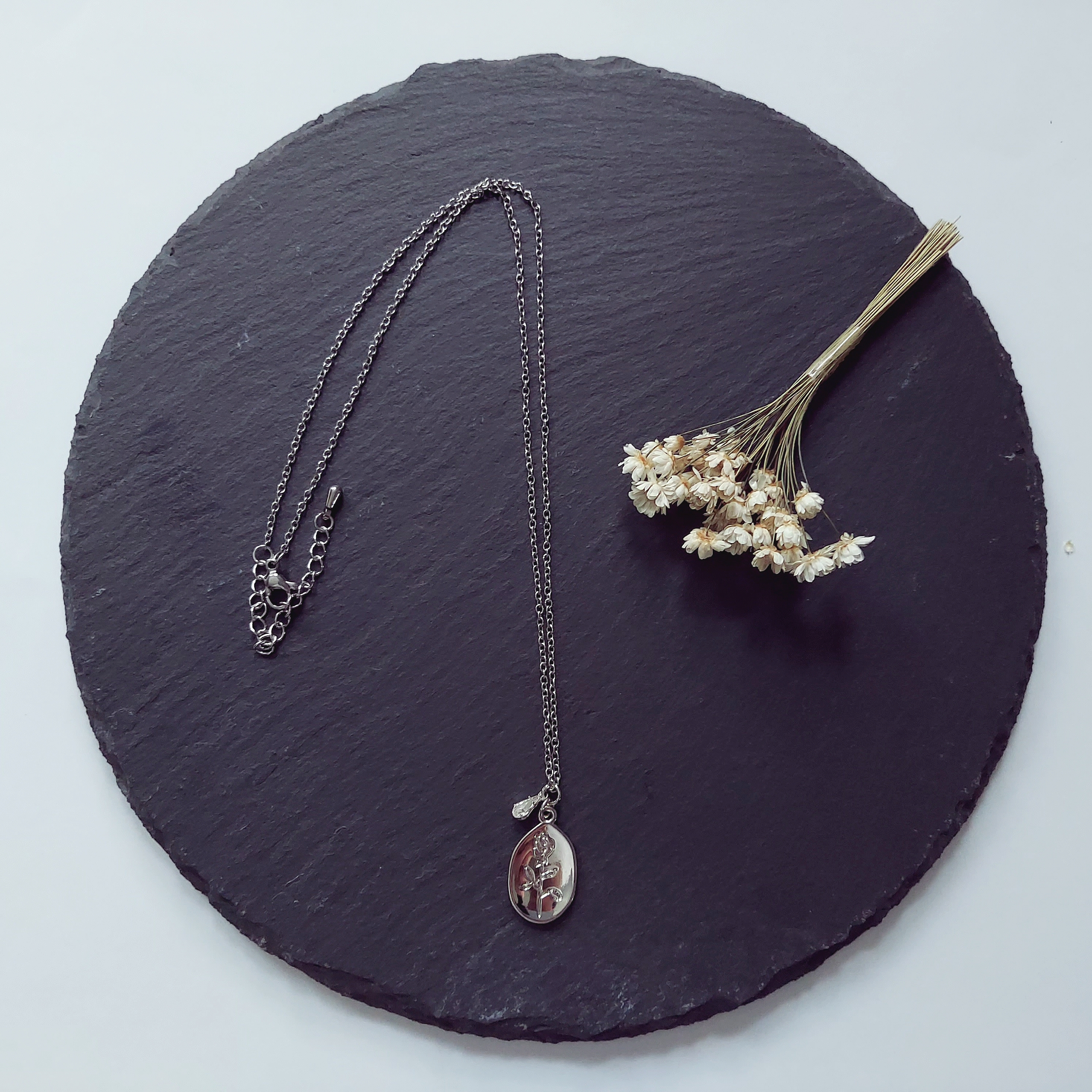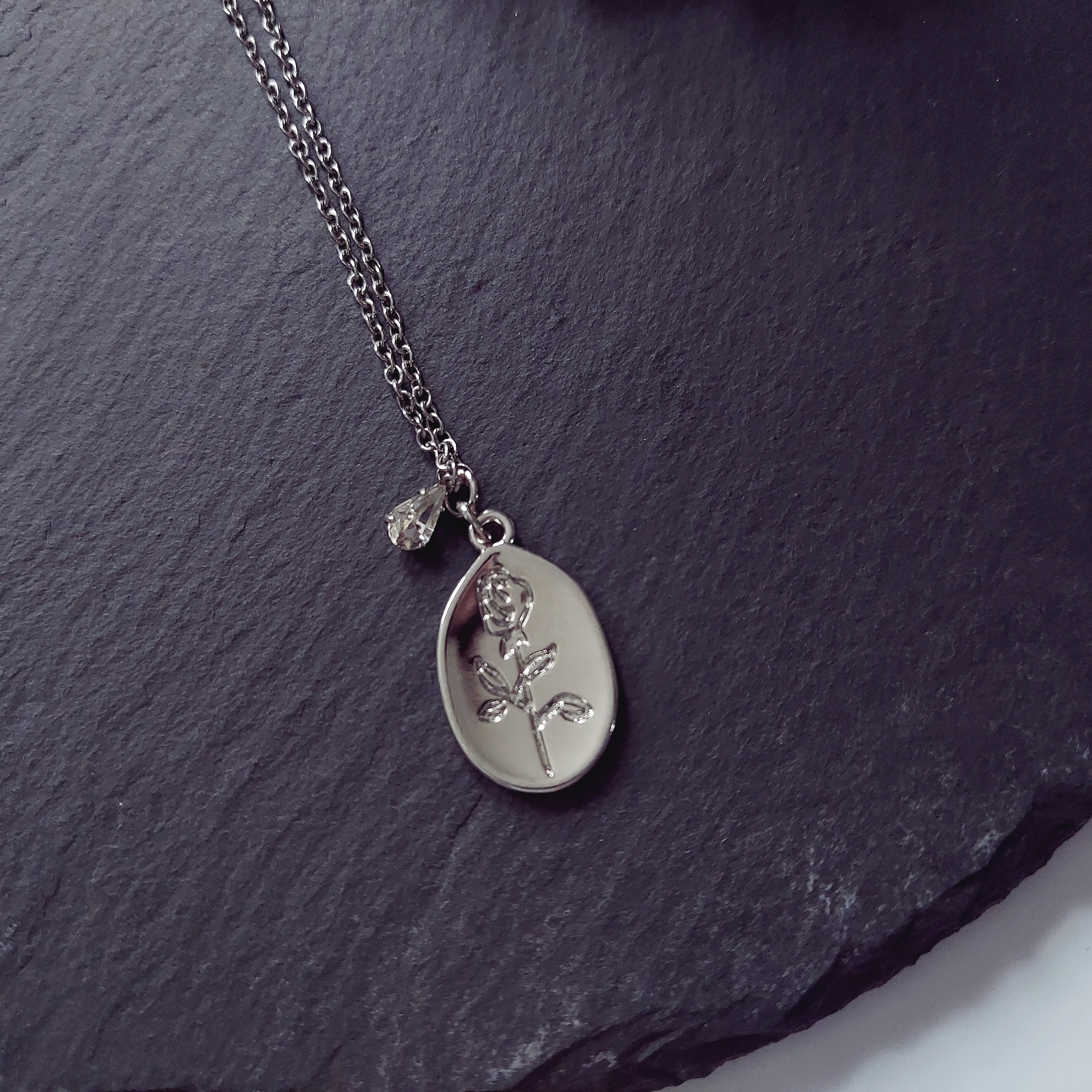 - a, 【サージカルステンレスチェーン】一輪の薔薇プレートネックレス