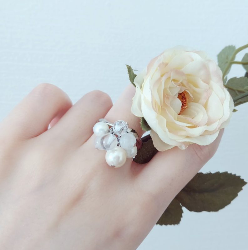 まるでブーケの花束のように様々なパール・ストーンの付いたリング*