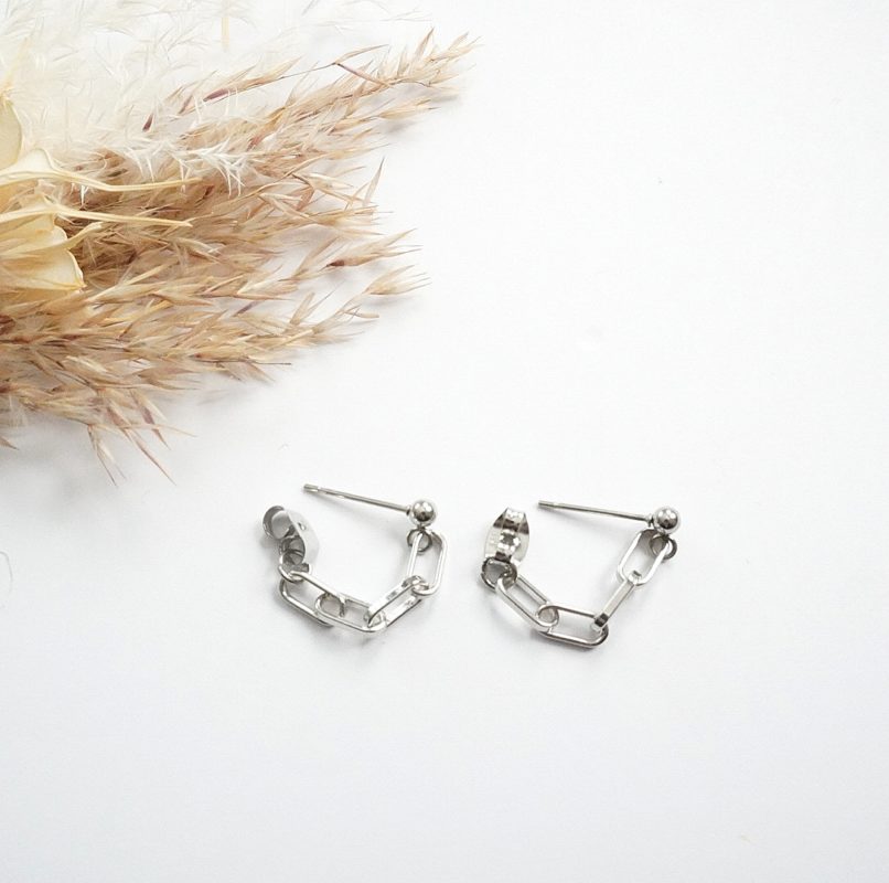 スクエアチェーンを使ったミニサイズのピアス*