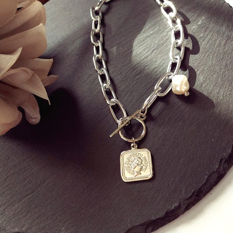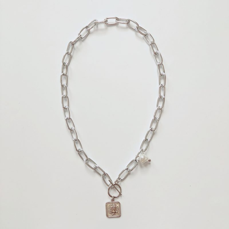 アルミ素材チェーンを使ったボリュームたっぷりネックレスです*